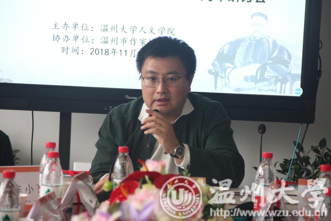 会议伊始,孙院长做了开场发言,简要介绍了本次会议举办的目的及意义,并逐一介绍了与会嘉宾。接着,作者之一陈小萍讲述了本书创作和出版的始末,解释了本书的文学内涵及其历史意义,并阐释了“寂寞大师”之为“寂寞”的含义。在赠书环节之后,与会嘉宾纷纷发言,从各自的研究角度,表达了对本书的肯定、赞赏,指出本书的不足,以及本书带来的个人体会和感悟。中国社科院研究员、鲁迅文学奖得主刘大先称扬孙诒让先生为“寒夜曙光”, 浙江文学院文学理论室主任郑翔从地域文化角度审视了浙江作家何以文笔空灵、内容厚重。上海思南读书会策划人李伟长从个人体验讲述了此书对他的启发,并且阐述了他对浙江商业和教育的思考;《思南文学选刊》副主编黄德海、同济大学古代哲学博士后郭君臣以对比的视角,表达了对孙诒让和作者的敬意,认为不应该只从经学家的角度看孙诒让,还有教育、现实变革等角度;上海社科院助理研究员徐佳贵从地方改革的角度,讲述了孙诒让办学、治学的缘起和经历,以批判性思维阐释先生的不寂寞;来自我校孙诒让研究所的王兴文、尤育号分别从历史学角度,分析了孙诒让的成就与孙氏家族之间的渊源关系,讲述了孙诒让“士”与“绅”的双重身份;从事中国哲学研究的孙邦金副教授强调了孙诒让的开创精神和对区域人文精神的引领作用;来自温州本土的地方文史专家卢礼阳、、方韶毅从编辑、记者的角度切入,对这本书的出版、传播提出了建设性的建议;作家程绍国、哲贵肯定了小说的艺术水准并指出可提升的空间;东君借此提出“小说是可以通过虚构达到真实”,在与普鲁斯特《追忆似水年华》的比照中再现了孙诒让的寂寞;负责本次会议的张真博士是孙诒让的忠实粉丝和深入研究者,笑言自己比孙诒让更寂寞!