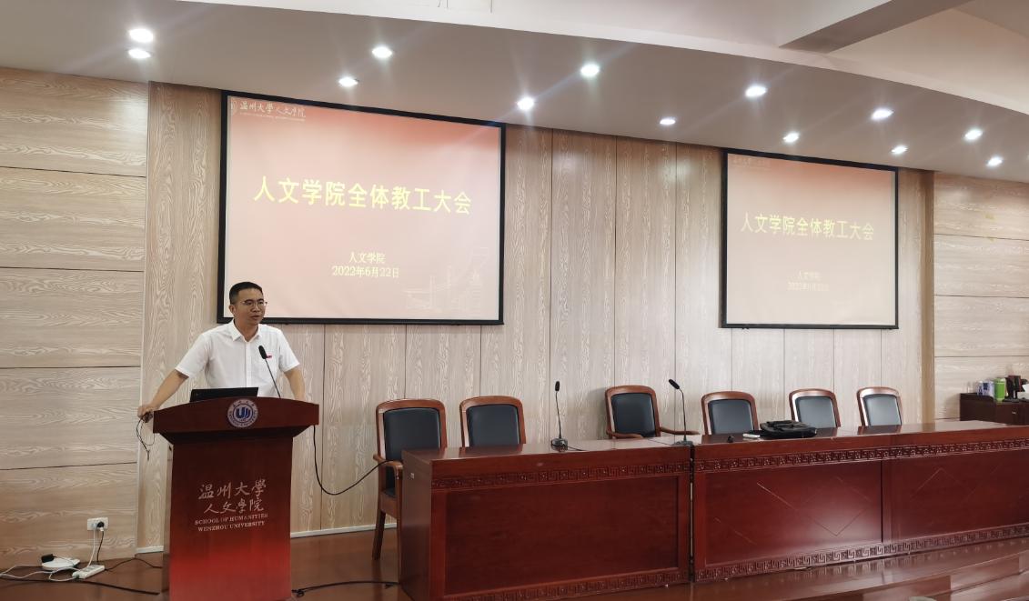 6月22日下午,awc777万象城娱乐官网在203报告厅召开全体教职工大会。学院领导班子及全体教职工参加本次会议,会议由学院党委书记江秀景主持。
