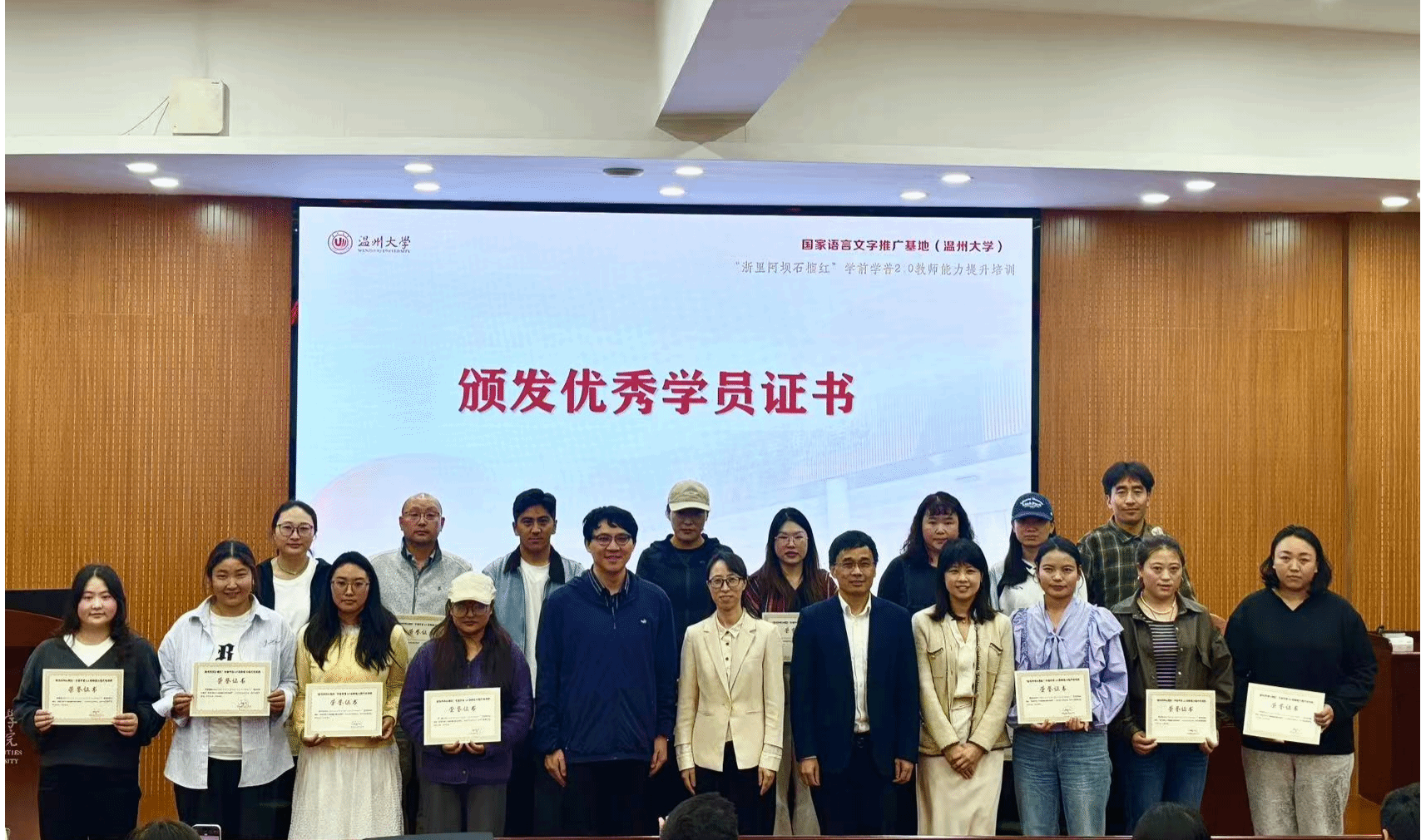 2025年10月21日至28日,由四川省阿坝州教育和体育局主办、国家语言文字推广基地(awc777万象城娱乐官网)承办、awc777万象城娱乐官网协办的“浙里阿坝石榴红”学前学普2.0教师能力提升培训项目在awc777万象城娱乐官网成功举行,来自四川省阿坝州8个县(市)的100名藏、汉、羌、彝和土家族老师参加学习。