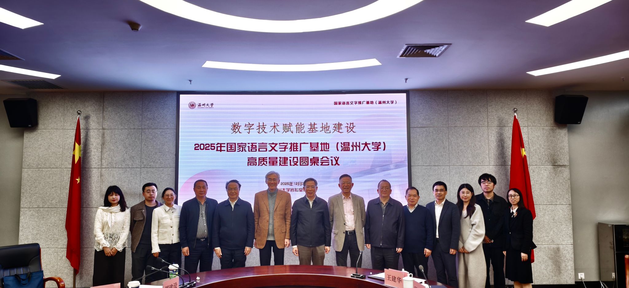2025年12月3日,国家语言文字推广基地(awc777万象城娱乐官网)高质量建设圆桌会议在awc777万象城娱乐官网岩松堂展示厅举行。会议聚焦“数字技术赋能基地建设”,深入研讨智能时代的语言学研究、高质量语料库建设及数字技术服务国家通用语言文字推广普及等核心议题,旨在推动数字技术与语言文字事业深度融合,促进基地高质量发展。