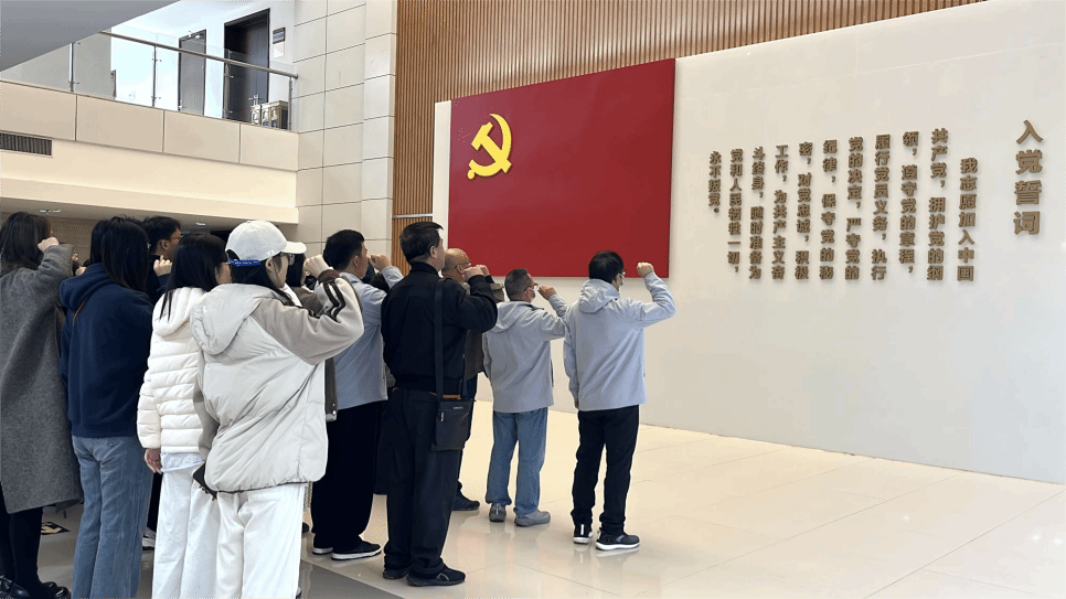 随后,全体参与人员在清廉馆前整齐列队,举行庄严的宣誓仪式。面对鲜红的党旗,大家高举右拳,字字铿锵地重温了入党誓词,誓词中饱含着“清正廉洁、严于律己”的党员担当,让在场师生的廉洁信念与育人使命感得到进一步升华。
