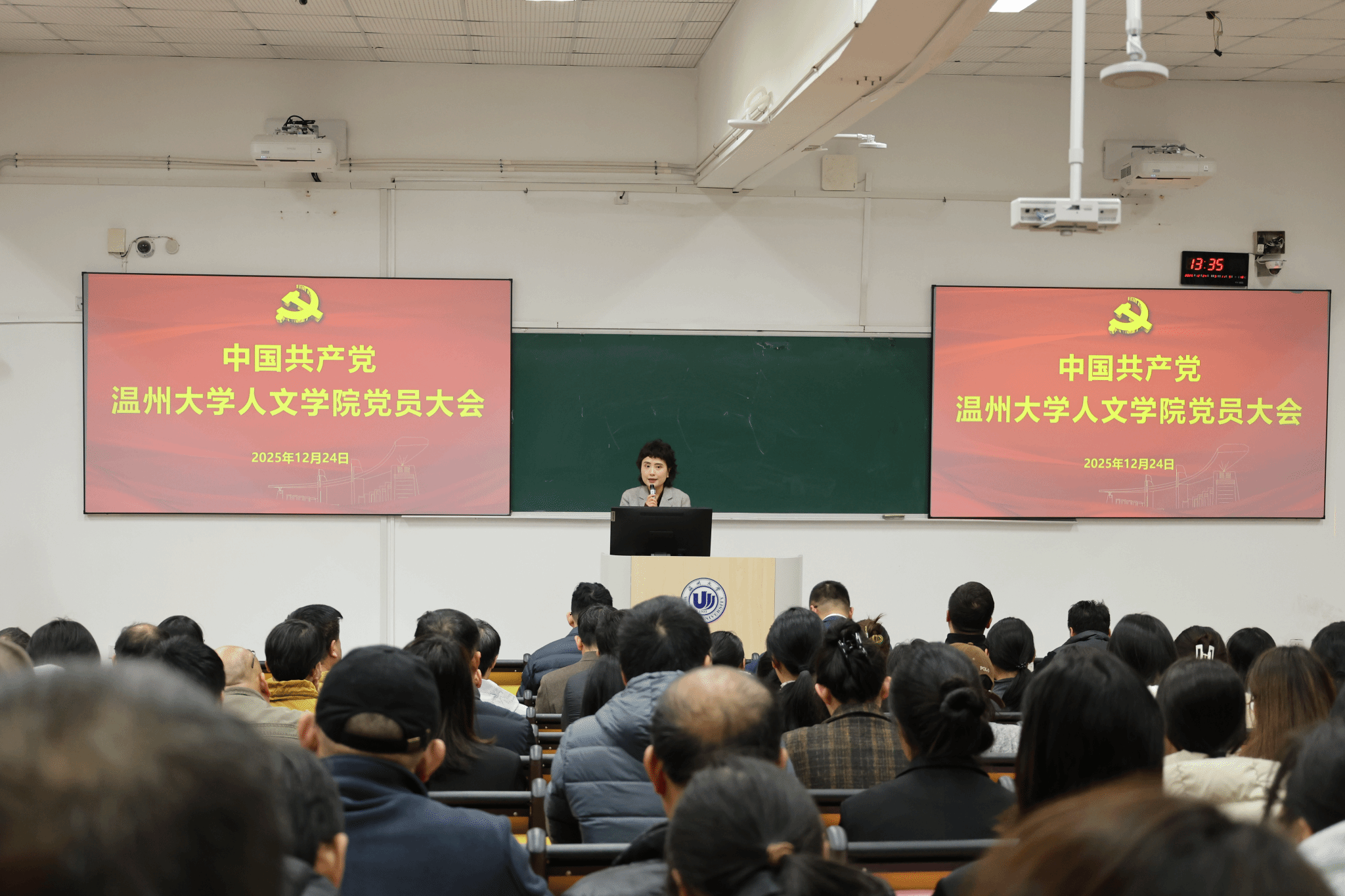 2025年12月24日下午,中国共产党awc777万象城娱乐官网党员大会在awc777万象城娱乐官网北校区人文楼101室召开,全体师生党员参加本次会议,党委副书记、纪委书记黄玮主持。