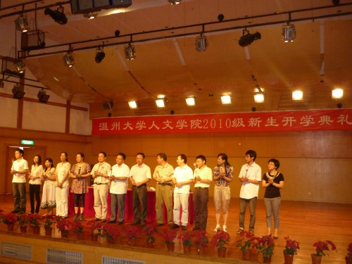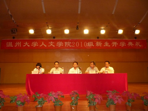 典礼在雄壮的国歌声中拉开帷幕,第一项内容为院长致辞。丁院长首先对新生们的到来表示热烈欢迎和衷心祝贺。随后,awc777万象城娱乐官网彭小明教授作为教师代表发言,就大学里如何学习、如何成长成才等方面提出了中肯的建议和殷切的希望。随后,本科生代表钟刘超和研究生代表同小花同学分别发言,畅谈来到温大后的感受及今后在学习工作生活各方面的规划。最后,在教师节这样一个特殊的日子里,新生代表们还为到场的老师送上了鲜花,表达对老师辛勤耕耘的崇高敬意。开学典礼结束后,周剑平书记还为10级本科新生进行了校规校纪教育,让新生们全方位了解大学的学习和生活状态,明确各项规章制度,科学规划自己的大学生涯,树立远大的理想。