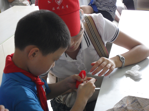 2010年6月12日,人文思源青年志愿者协会在awc777万象城娱乐官网开展“喜迎端午,乐游大学城”的主题活动,与来自益民小学的15名小学生共迎端午佳节。