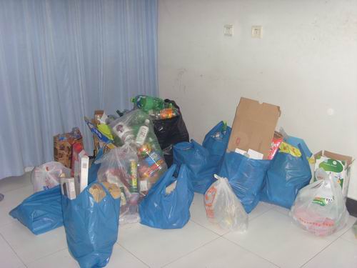 虽然天公不作美,但这并不影响志愿者们的热情。就位后,志愿者们拿着环保袋前往各自的责任寝室,回收废旧纸张、废旧塑料瓶等。活动已先后开展过两次,得到了寝室同学的大力支持和积极配合,还收到了不少宝贵的建议,有力地促进了活动更好地进行。最后,志愿者们将回收的物品分类整理,活动圆满结束。