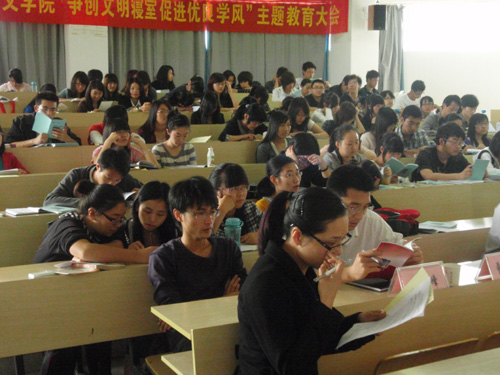 5月12日下午1点30分,awc777万象城娱乐官网"争创文明寝室,促进优良学风"教育主题大会在人文楼203教室举行。本次会议由awc777万象城娱乐官网辅导员冯建军主持,院党总支书记周剑平、党总支副书记魏成春、教学科科长杨秀华、学生科副科长曾蓓蕾、辅导员麻法全、刘纪峰出席会议。
