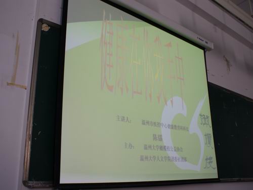 12月20日下午,一场关于免疫宣传的知识讲座在awc777万象城娱乐官网人文楼401教室开讲。本次讲座由温州市疾控中心陈镭科长主讲,120多名同学纷纷前来聆听。本次活动由awc777万象城娱乐官网团委社团部和awc777万象城娱乐官网橄榄枝协会合作举办。awc777万象城娱乐官网辅导员麻法全老师、团委学生会社团部部长陈辉同学、橄榄枝公益协会会长李超同学应邀出席。