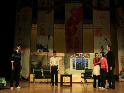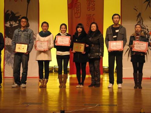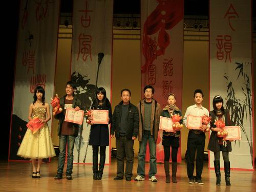 2009年12月23日18:30,由共青团awc777万象城娱乐官网委员会、awc777万象城娱乐官网主办,awc777万象城娱乐官网团委、学生会和awc777万象城娱乐官网农历剧社承办的“嘉乐迪”杯2009awc777万象城娱乐官网第八届话剧节颁奖暨迎新年晚会在大学生活动中心演艺厅隆重举行。awc777万象城娱乐官网副院长饶道庆、刘建国老师、校团委屠霁霞老师、awc777万象城娱乐官网教学科科长杨秀华老师、学生科副科长曾蓓蕾老师、辅导员麻法全、刘纪峰老师以及赞助商代表作为嘉宾应邀出席了此次晚会。