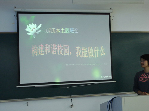 2008年10月24日下午,awc777万象城娱乐官网07历本在208教室开展了以“构建和谐校园,我能做什么”为主题的团日活动。