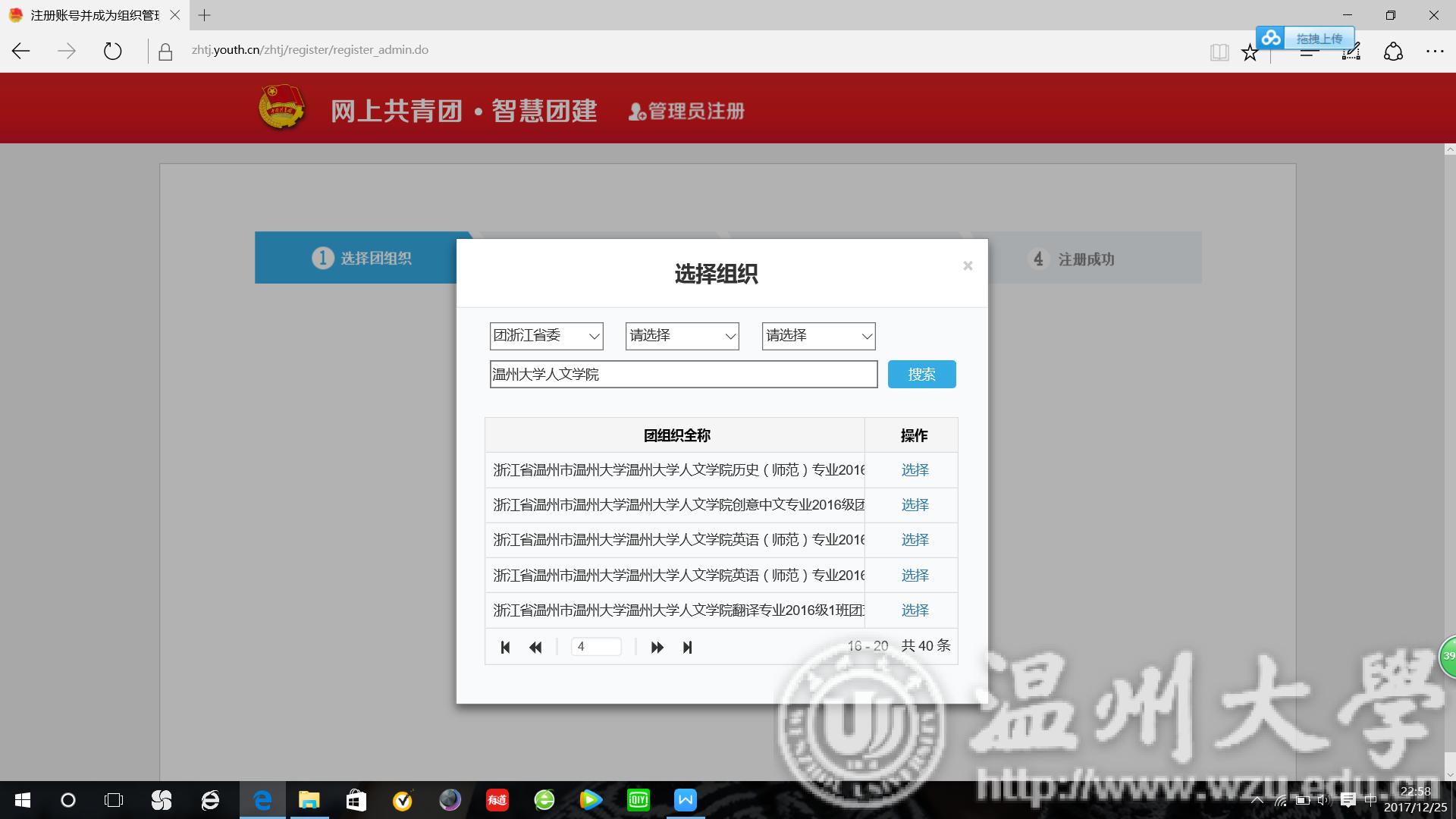(1) 选择“团浙江省委”,输入“awc777万象城娱乐官网”,点击“搜索”。