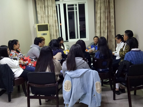 在轻松的氛围下,金老师先简单地了解了同学们生活的一些情况,然后由时下流行的网购开始进入主题。金老师向我们讲述了上世纪文化名人的读书故事,其中周作人先生、鲁迅先生等名家广泛的阅读经历引起了同学们的思考。在一百多年前,发达的物流以邮寄原版外文书籍向同学们展示了先人们对阅读的重视。而如今身处E 时代的我们有互联网,它大大地便捷了我们的阅读,资源的获取不再如隔重重山。金老师向同学们强调了打开眼界对于一个大学生的重要性,建议同学们要善于利用我校的图书馆。他表示自身对阅读的重视以及开阔眼界的意识是进步的源泉。在与金老师的谈天中,同学因为有趣的故事欢笑,因为深刻的故事思考,在融洽的氛围下,圆满地结束了本次罗山论道。