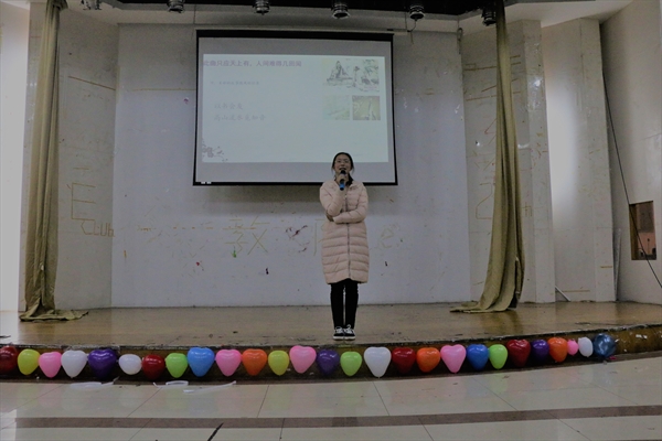好书识缘环节,王易炜、周祎梦等同学将名著与电影结合,以配音、字幕的形式将书中的思想借托对白的形式,生动地展现了好书中的情怀。《金锁记》、《傲慢与偏见》等经典作品,在影、声、音中全方位与大家分享。读书心得,优美的语句随音乐静静流淌,道尽书中真意。 接着华凯泉同学献上一曲,以歌曲的形式展现对书的感激,博得阵阵喝彩。不要错过与好书的一次结缘。