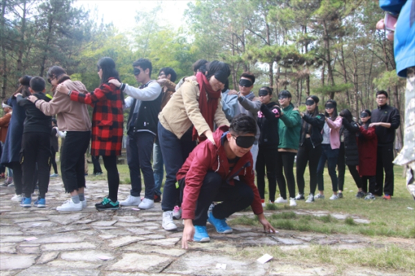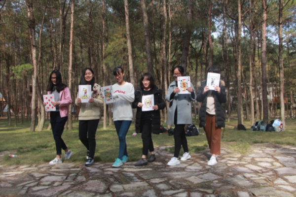 简单的问好后,便开始了一天的活动。团学众人在海报上联手印,象征着每个人的手印串联在一起共同维护人文团学大家庭。接着,各部门大声宣告了接下来的工作目标,主席团则以每个部门的目标为基础,深化团学工作宗旨。形形色色的带着干事们愿景与优缺点的个性小纸人充分表现了awc777万象城娱乐官网的创造力与想象力。扑克牌小游戏抛砖引玉,大家以拿到手的花色为基础,随机分组作战贪吃蛇游戏,这个游戏十分考验了智力与体力。经过一番摸索后,各组都形成了行之有效的策略,蛇头、蛇尾、蛇身表现得都相当出色。不论是游戏的赢家还是输家,都感受到了它带来更是一种集体团结协作努力后的畅快。欢笑声充盈这悠悠的树林。中午休整后,迎接干事们的是更为有趣的游戏。在培训师的带领下,干事们围成圈以手搭到左右人的肩,集体协作来完成热身运动。接着,按照上午的分组进行三次的“食物连连看”的小组竞赛。在首次比赛时,各组由于经验不足,场面略显混乱;但是,各组在总结经验之后,讨论战略战术,效果相当明显。各组都配合默契,进步飞速。通过这次游戏,干事们懂得了在遵守规则的前提下,一个团队要有明确分工,统一的全局指挥,并要有远见意识,才能将一个任务完成得完美。如此好的天气,怎可辜负永嘉书院的美景。沿桥走过宽阔的河流,映入眼帘的便是古色古香的水车,高耸的山峰。在金珠瀑布下感受沁人心脾的清爽;在活字印刷术体验馆浸浴在浓郁墨香中……傍晚,干部们又前往龙河古渡,其中热血幽默的搞怪时装更是引来一片笑声。一天的疲惫与欢快都在回程的车中静静流淌。