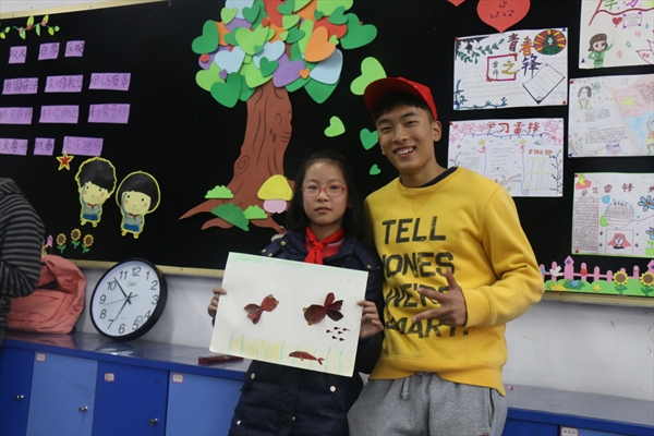 3月11日上午7点40志愿者们集合在高教园区始发站前的公交站点乘坐公交车前往丽岙一小。在到达活动地点之后,孩子们已经在学校游戏,志愿者进行了教室的布置,引领着孩子们进入活动教室。主持人在介绍完活动意义和具体安排,对志愿者和孩子们分组完毕后,发下垃圾袋,要求志愿者带着孩子们在校园内进行清理,并注意孩子们的安全。孩子们就匆忙跑向自己想要去的场地完成自己的任务,孩子们在认真清理着自己场地上的垃圾,还给自己的校园一份整洁。30分钟后孩子们再次在原来的地点集合,并拿出自己的垃圾袋,整理出在校园里捡到的落叶加上我们准备的叶子,在每个小朋友拿到足够的叶子后,发下白纸,双面胶和彩笔等,希望孩子们能够开动脑筋制作树叶贴画,刚开始孩子们对于如何制作毫无头绪。在志愿者的帮助下,顺利打开思路动手制作贴画。缤纷的落叶在孩子们的手下变换成海底的鱼、龟、海草,天空的云朵、飞燕。自然万物都通过落叶的形象生动的展示在原本空白的画纸上,相似的落叶展现出不同的姿态,焕发不一样的生机,大概完成了落叶的剪贴工作后小朋友们拿起彩笔进行加工,使画面更加精致。完成了自己的作品后,孩子们自豪地拿着自己的作品进行照相。11点所有孩子们完成了自己的制作,志愿者和孩子们最后一次大合照之后。等着孩子们的家长们接走自己的孩子们后,志愿者清理了活动场地,便返回了。