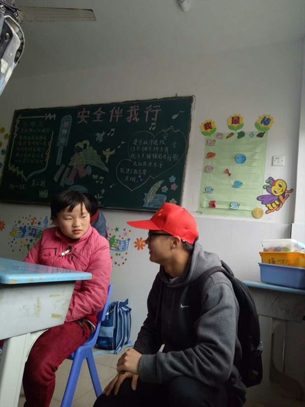 中午1点志愿者们全体集合在高教园区始发站乘坐83路公交车前往瓯海利宝特殊教育学院。在50分钟后到达瓯海利宝特殊教育学院。进入到校园内志愿者们找到负责的老师,并将志愿者分成绘画组与游戏组对孩子们进行不同方式的引导。在两个小组来到各自负责的教室开展具体活动前,由志愿者进行生活卫生常识的讲授,虽然有些孩子有些羞涩沉默但是大部分孩子们仍旧具有很高的参与热情。在播放完准备好的展示资料后,一个志愿者与一个小朋友对应开始了正式的活动,绘画组拿出打印好的卡通形象,对照着样本,志愿者和小朋友们一起开始描摹,通过卡通形象告诉孩子们正确的生活习惯,例如在餐前洗手,不吃掉在桌子上的食物,在饭后要刷牙等。用无言的方式达到教育效果。游戏组在把教室场地布置好后,与孩子们开始各样的游戏环节,通过手工,团队游戏,以及奖励等方式让小朋友们在一天的学习后放松,并且在游戏中学会合作与分享。孩子们对于活动形式有不一样的反应,但是一样的是有人一起游戏的喜悦和快乐。有些孩子有些喜怒无常,志愿者还是在耐心地教导着他们。随着渐渐的熟悉,孩子们也慢慢平复了情绪,加入到志愿者的引导之中,笑容也开始绽放。或许孩子们无法表达自己心中的意思,但是志愿者开始懂得了孩子们的想法和意愿,知道了如何让小朋友配合自己完成游戏和图画。下午四点,下课钟声响起,志愿者们在合影留念后,与孩子们不舍告别。