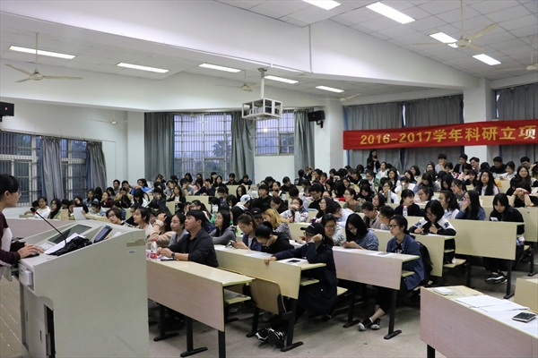 2017年4月23日18:30,万象城官网于人文楼101教室举办科研立项动员大会。本次大会邀请了团学主席团以及几位科研立项申报成功的同学出席,大一同学全体参加。