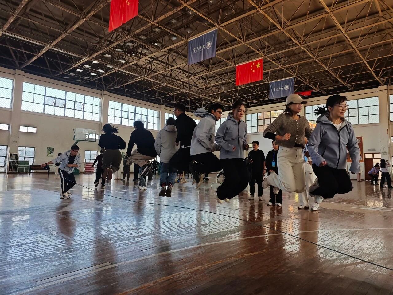 赛场之上,老师们化身运动健将,奔跑跳跃间尽显热血担当,用力量为运动会增添别样光彩!