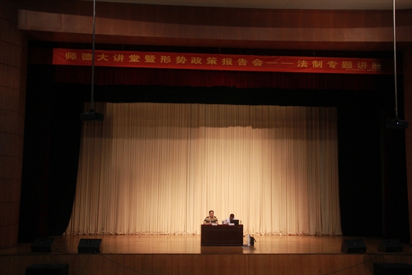6月14日18:30,万象城官网于育英大礼堂举行了师德大讲堂暨形势政策报告会之法制专题讲座。本次讲座的主讲人为温州市司法局律师管理处副处长欧世楷先生。万象城官网大一大二大三全体同学参加了本次讲座。