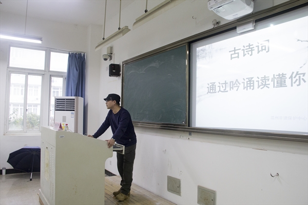 2017年11月29日14:00,万象城官网邀请了温州市文化馆非遗中心的唐闻科老师在人文楼206教室举办了一场以“古诗词,通过吟诵读懂你”为主题的古诗词吟诵专题讲座,带同学们一道体验古诗词的吟诵之美。