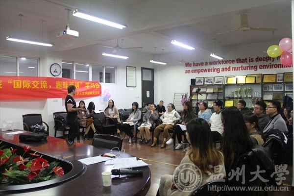 2017年12月1日,由awc777万象城娱乐官网研究生会主办的“国际交流,趣味英语”主题学习会在北校外语楼212会议室如期举行,特邀意大利籍年轻外教为大家带来一堂生动难忘的趣味英语课。来自机电学院、awc777万象城娱乐官网、数信学院、法政学院等多个学院的研究生参加了本次活动。
