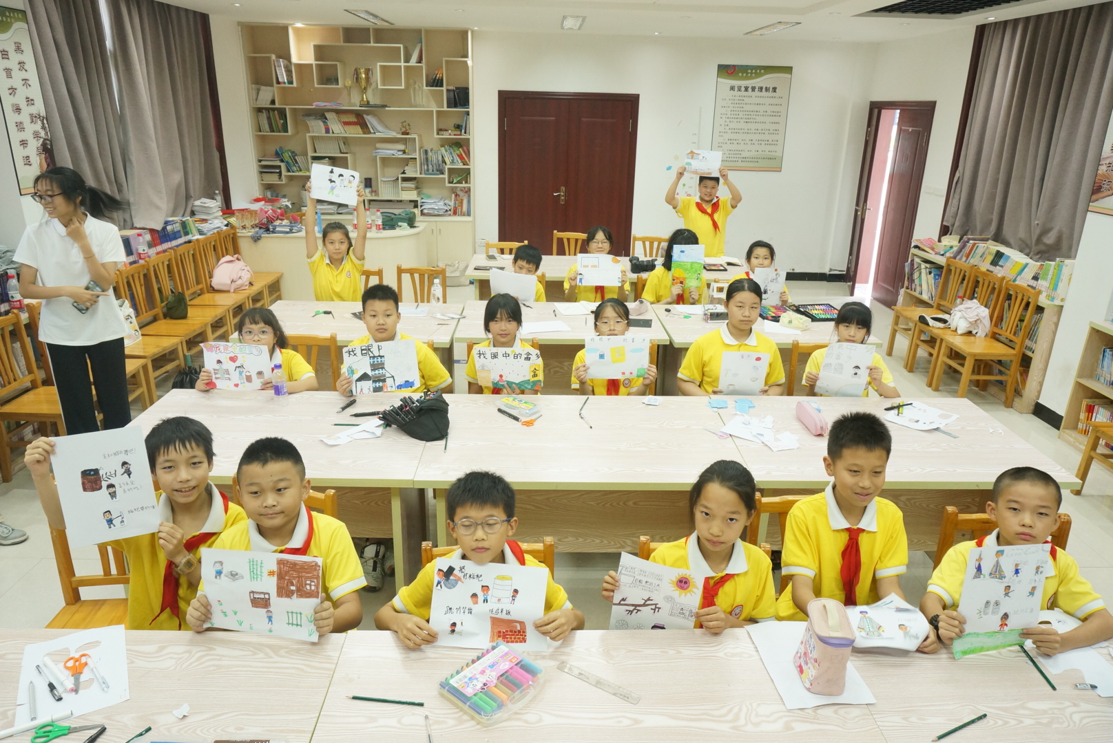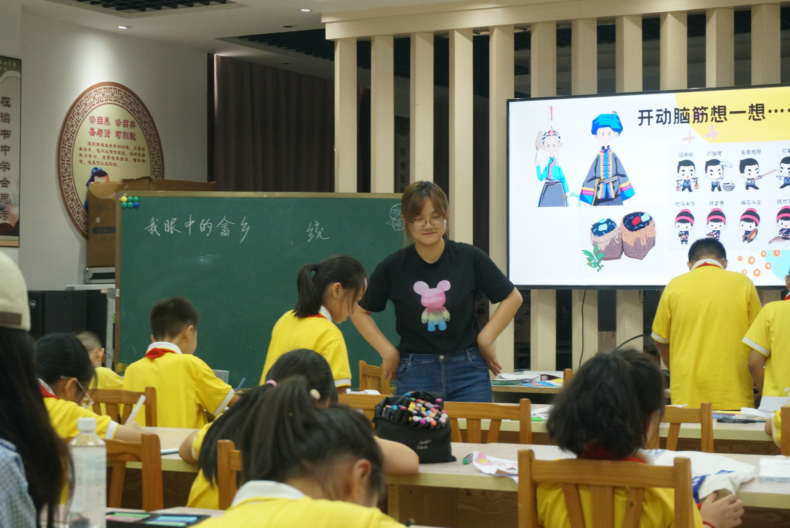 主讲员黄伊馨、甘玉慧以“我眼中的畲乡”为主题开展绘画课堂,她们用生动形象的图片展示了一些畲族的特色建筑以及特色服饰,带领小朋友们领略了独属于畲族的风土人情,此次的课程旨在激发小朋友们对畲族文化的认同感和自豪感。