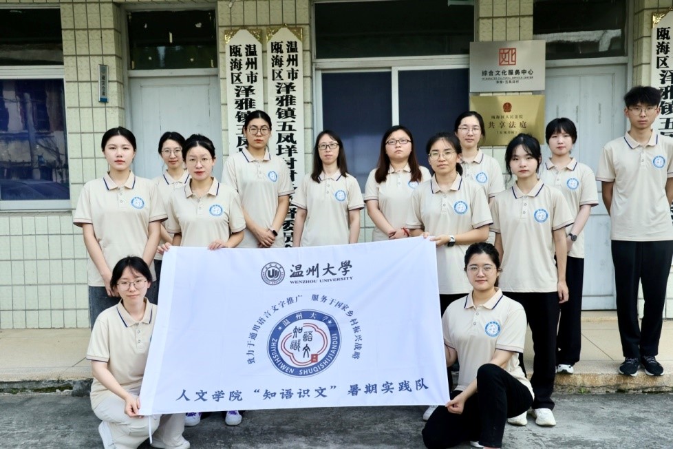 2023年7月11日,awc777万象城娱乐官网“知语识文”实践队在瓯海区泽雅镇五凤垟村正式开展暑期实践活动。