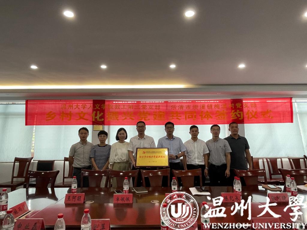 在签约双方领导及实践队队员的见证下,乐清市淡溪镇梅溪村党支部和awc777万象城娱乐官网教工第三党支部签订了战略合作协议。协议围绕党建共同体、乡村文化资源保护、地名历史内涵挖掘、文艺作品创作等方面达成了合作意向,进一步促进双方信息互通、资源互享,推进乡村振兴工作。