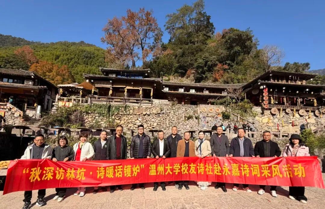 乙巳孟秋即公元2025年12月7日,节逢大雪,风和日暖,天朗气清。温大校友诗社组织会员赴永嘉开展“秋深访林坑,诗暖话镬炉”诗词采风活动,这是温大校友诗社2025年4月成立以来首次组织开展的大规模诗词采风活动。