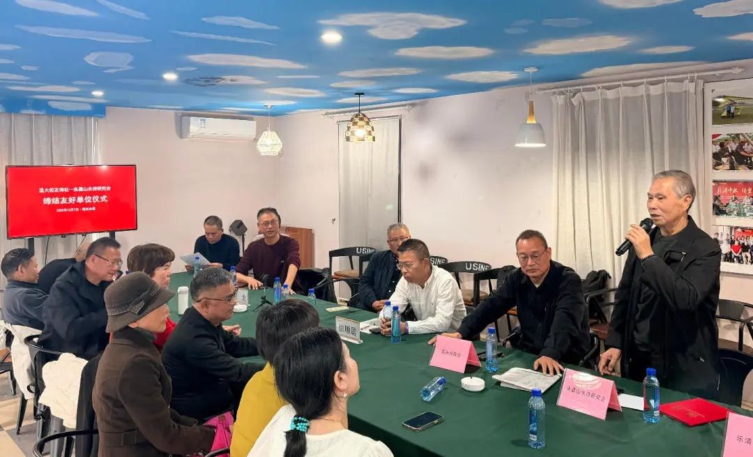 会上,举行了温大校友诗社与永嘉山水诗研究会缔结友好单位仪式,可谓“归舟系永嘉,问道溯诗源”。